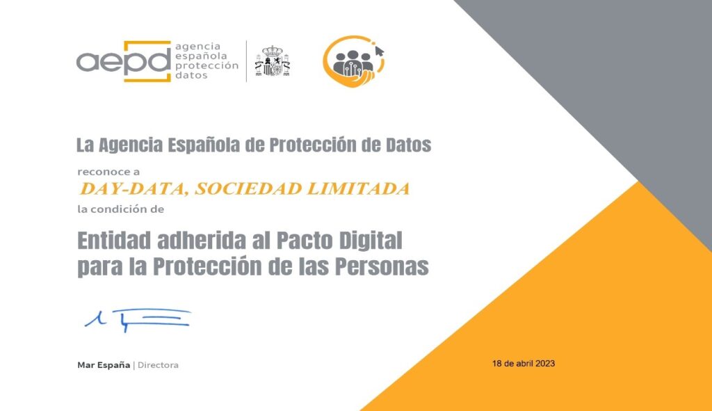 Day Data S.L.U. ES ENTIDAD ADHERIDA AL PACTO DIGITAL PARA LA PROTECCIÓN DE LAS PERSONAS.